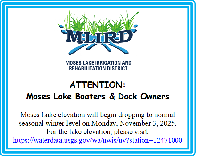 Board meetings are held on the second Tuesday of each month in the MLIRD conference room and the public is always invited to attend. Located at 932 E. Wheeler Rd., Moses Lake, WA.