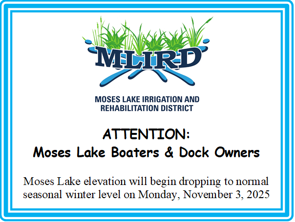 Board meetings are held on the second Tuesday of each month in the MLIRD conference room and the public is always invited to attend. Located at 932 E. Wheeler Rd., Moses Lake, WA.